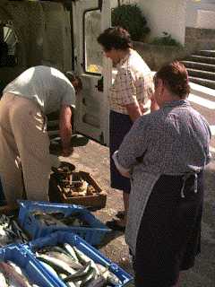 1000 Bwoooooop! Bwoooooop! Every Wednesday morning the sound of the Fish Man blowing a seashell alerts the town to the availability of fresh fish. Two elderly women dressed all in black walk to the Fish Man's truck, parked across the street from Fernandito's. One of the village cats moves faster than they, and is first to request the Fish Man's attention.