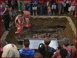 After a time the imu was opened and the whole pig was lifted out onto a carving table...