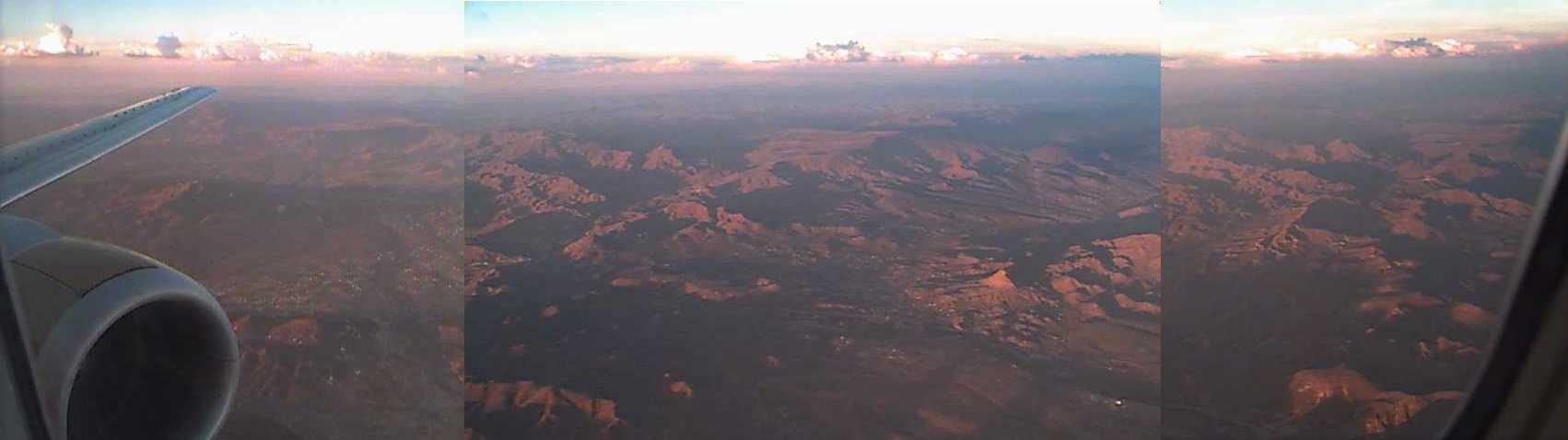 Looking out of the airplane window during this trip never ceases to amaze me. I love the change of colors and textures and shapes. We go from the Bay Area's evergreens to the California desert (Death Valley) and into the Arizona desert (seen here).