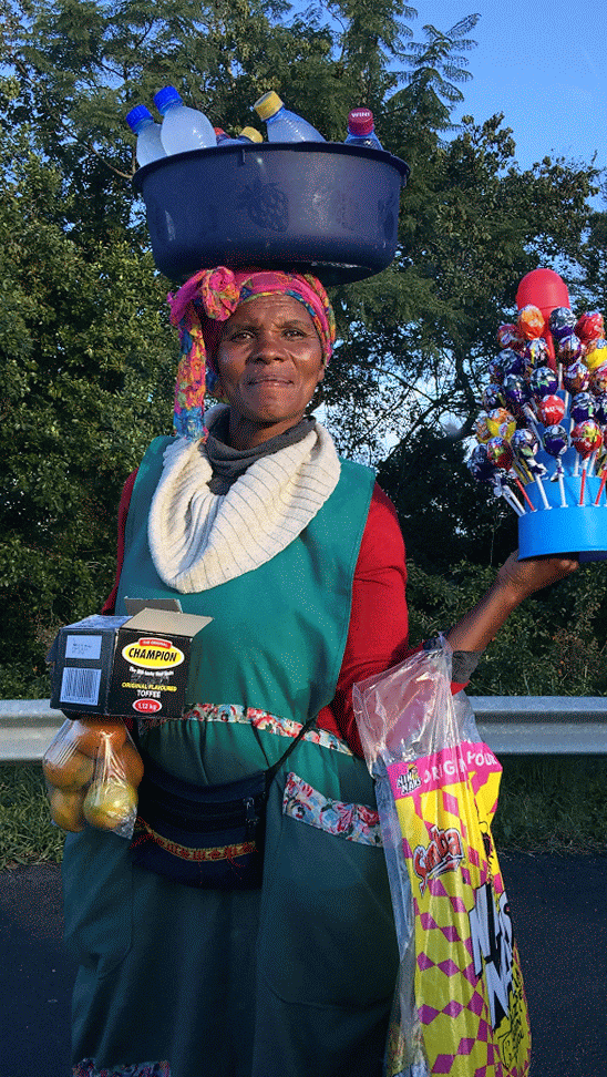 Cars are expensive; buses aren’t. Backpackers and travelers use the Baz Bus for its hop-on, hop-off door-to-door service between significant points and backpacker lodges, a network of which blankets the country. Most native South Africans use the local buses, whether it’s City-to-City, or Intercape (“We promote the Christian faith on our coaches“), or Translux. Rather than have all the buses stop, waiting passenger or not, in SA the locals make a hand gesture for each destination and the driver stops when he sees a customer. Sometimes, as we passed a crowded bus stop there’d be dozens of hand signs, it’d look like a stop-motion strobe light moment in a dance club.